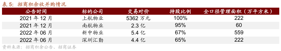 通过数次收并购扩大规模,并购聚焦航空、金融等专业性较强的业态。2021-2022年,公司先后并购上航物业、南航物业、新中物业、深圳汇勤等,总共获得在管面积约1063万平方米。