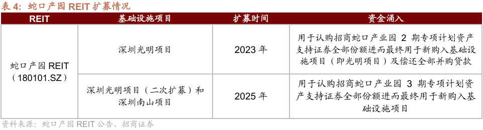 产业园REIT已经完成首次扩募并拟二次扩募,关注后续REITs扩募“常态化”带来持续利润贡献以及公司进一步通过不动产资管循环扩大资产管理规模的可能性。蛇口产园REIT已于2023年进行首次扩募,并于2025年4月发布公告称拟申请第二次扩募并新购入基础设施项目。REITs平台的扩募能力初步得到验证。关注后续REITs扩募“常态化”带来持续利润贡献以及公司进一步通过不动产资管循环扩大资产管理规模的可能性。