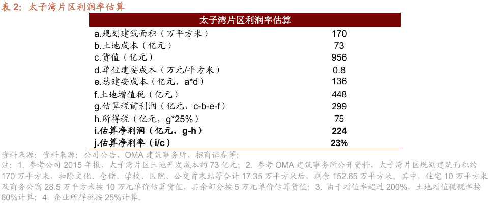 蛇口、太子湾、前海等历史战略资源的逐步释放或为后续销售及结算利润提供支撑。公司在深圳的蛇口、太子湾、前海等区域拥有大量待开发的优质资源。其中,太子湾片区总建筑面积约170万平方米,大部分面积已开工,近年来或逐步进入竣工结转阶段;妈湾片区总经营性用地面积80.62万平方米,计容总建面455.8万平方米。这些土地储备初始成本低,增值收益可观。以太子湾片区为例,太子湾片区估算净利率或可达到约23%。历史战略资源的逐步释放或为公司后续利润提供支撑。