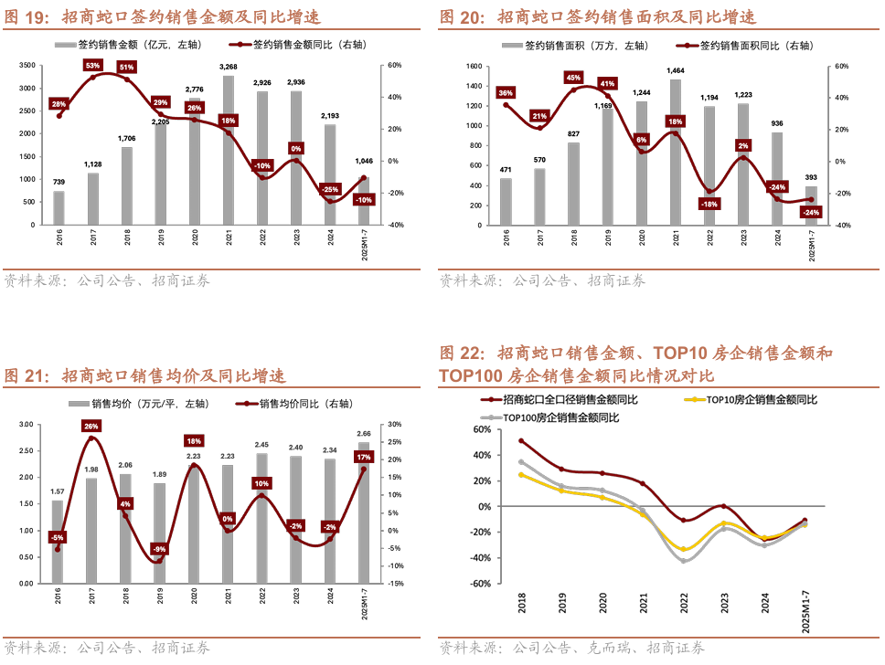 □开发业务: 2025年初以来公司全口径销售金额排名升至行业前四;拿地端保持聚焦且产品力提升,同时2025年1-7月公司全口径拿地力度较2024年全年上升18PCT至40%,据测算,2022年及以后拿地的项目去化率和净利率均有明显上升。此外,公司一方面拥有蛇口、太子湾、前海等历史战略资源,另一方面在上海等核心城市通过旧改等方式获取增量优质资源的能力也曾被验证,战略资源的逐步释放或为公司后续业绩提供支撑。