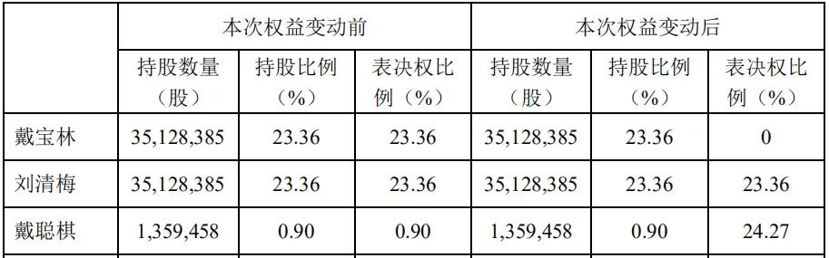 本次表决权委托后,公司控股股东、实际控制人变更为戴聪棋先生和刘清梅女士;戴宝林先生、高好投资和龙玺企管作为戴聪棋先生和刘清梅女士的一致行动人。