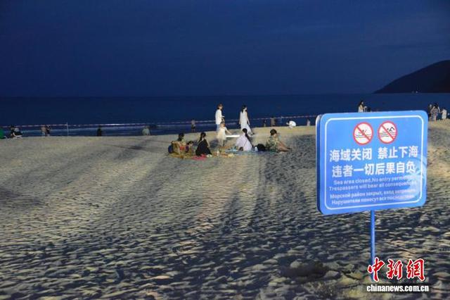 8月23日晚,三亚大东海旅游区沙滩上立起了“海域关闭,禁止下海”的标识牌。台风“剑鱼”逼近三亚,多个景区暂时关停。 张月和 摄