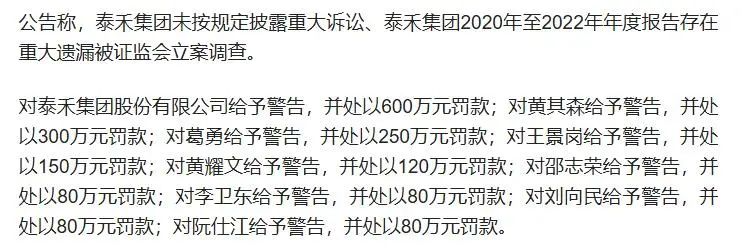 值得注意的是,这是黄其森继2022年3月16日被带走协助有关机关调查后,再次陷入调查风波。彼时,泰禾集团称其可通过适当方式参与企业运营决策,8个月后黄其森回归并继续担任董事长、总经理等关键职务。此次被留置,泰禾集团表示,截至公告披露日,公司存在资产被冻结、查封的情况。