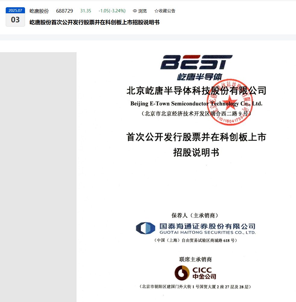 北京屹唐半导体科技股份有限公司上市日期2025-07-08