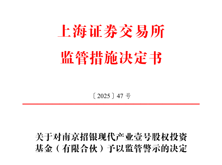 2025年8月22日关于对南京招银现代产业壹号股权投资基金(有限合伙)予以监管警示的决定