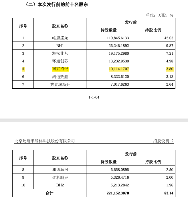 “招银系”股东:指一个叫“南京招银”的投资基金,它是屹唐股份的一个股东。