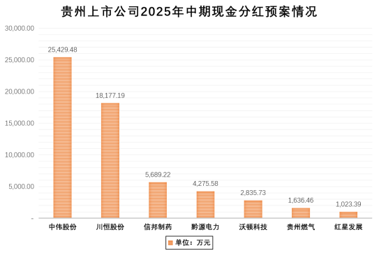2025年上半年,贵州上市公司在实现业绩增长的同时,回报投资者意识显著增强,共有中伟股份、川恒股份等7家公司披露中期分红预案,参与分红的公司数量占比居全国第4位、西部第3位;已宣告中期分红规模达5.91亿元,较上年同期增长近4倍。