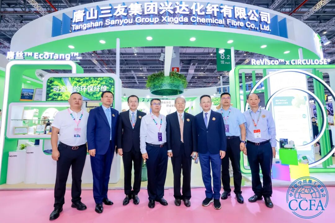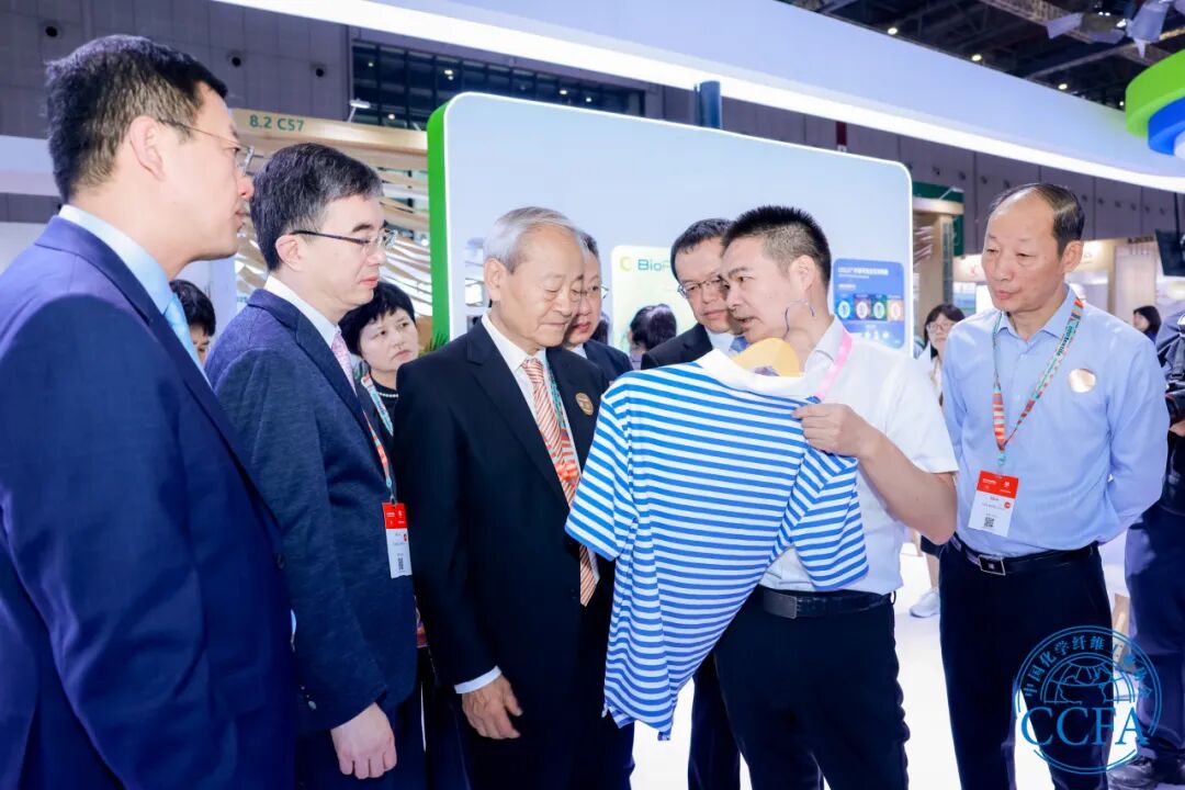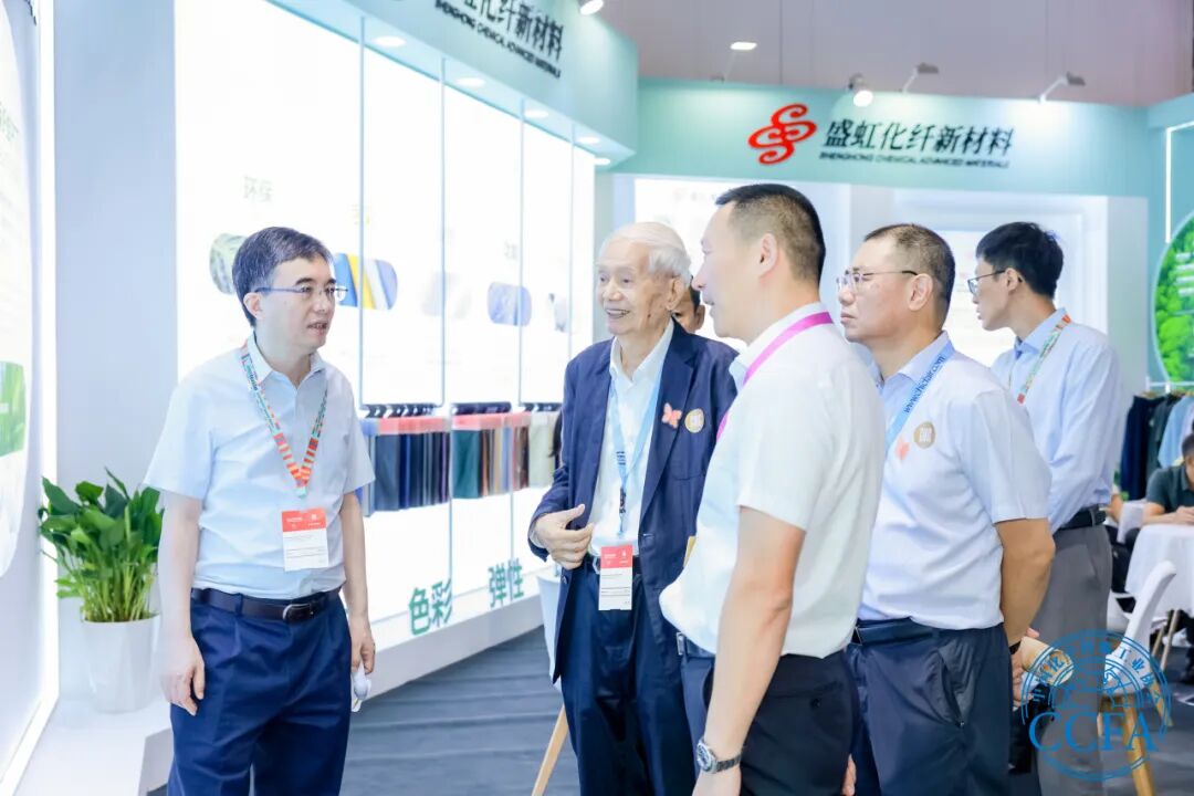 开幕当日,中国纺织工业联合会原会长杜钰洲、原副会长许坤元,副会长李陵申、端小平、杨兆华、梁鹏程,工业和信息化部消费品工业司纺织处副处长吴桐,中国化学纤维工业协会会长陈新伟等领导嘉宾参观了中国纤维展区,并走进桐昆集团、盛虹集团、华峰化学、三友化纤、赛得利、永荣锦江、扬州惠通、华恒生物、新乡化纤、通用技术新材、新凤鸣、恒天纤维、德福伦、义乌华鼎、三联新材料、苏州春盛等,详细了解了企业的参展情况,并就企业技术创新方向、绿色低碳实践及产业链协同需求展开深入交流,鼓励企业加强科技创新与上下游合作,推动纤维材料在功能性、可持续性等领域的突破,助力行业向高端化、智能化、绿色化转型。