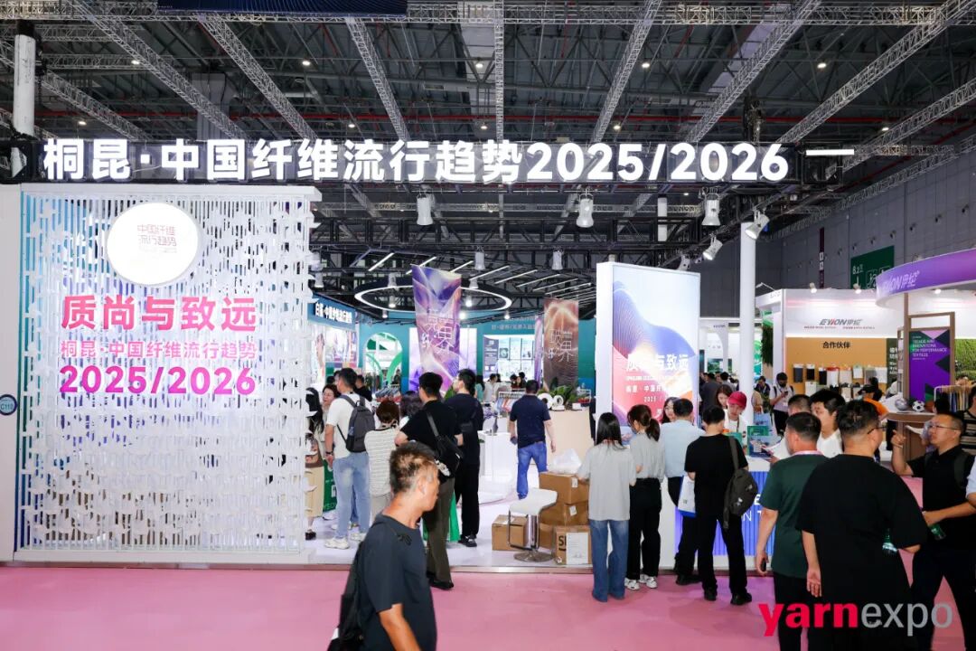 中国纤维流行趋势自2012年发布以来,一直致力于挖掘国内高技术纤维产品,通过原料端的趋势分析与解读,将纤维的最新技术、多元应用及前沿趋势零距离传递给下游客户。展区集中展示了入选桐昆·中国纤维流行趋势2025/2026的8大类新型纤维,深入挖掘中国纤维的流行趋势。同时,其结合中国纱线流行趋势2025/2026,全方位、多角度将纤维和纱线的最新技术、前沿趋势传递给行业及下游客户。