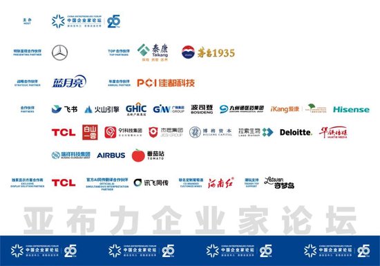 感谢本次夏季年会的特别呈现合作伙伴梅赛德斯-奔驰;感谢TOP合作伙伴泰康保险集团、茅台1935;感谢战略合作伙伴蓝月亮、年度合作伙伴佳都科技;感谢飞书、火山引擎、高新产服集团、广微集团等众多合作伙伴们对本次亚布力论坛夏季年会的鼎力支持!