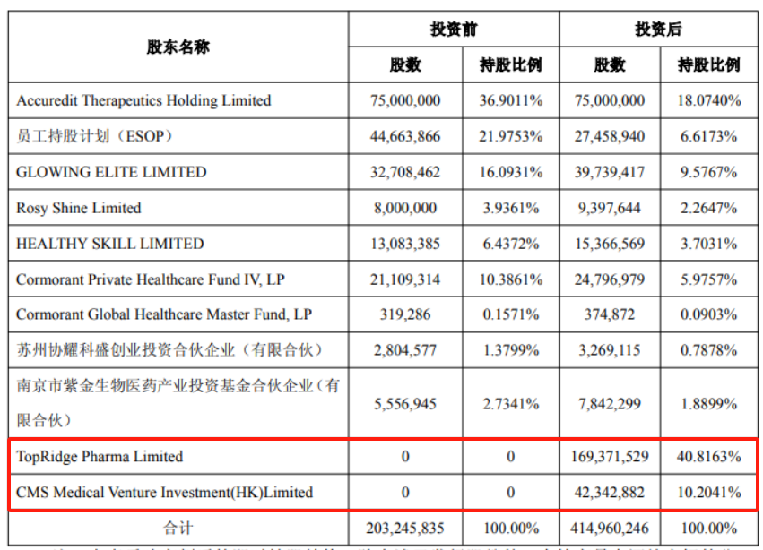 据最新西藏药业披露,全资子公司TopRidge Pharma Limited投资6000万美元,获得Accuredit Therapeutics Limited40.82%股份,关联方康哲药业下属公司同步投资1500万美元,持股10.20%。