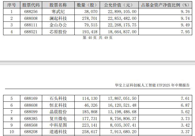图:2025年中期报告科创人工智能ETF(589520)前十大权重股
