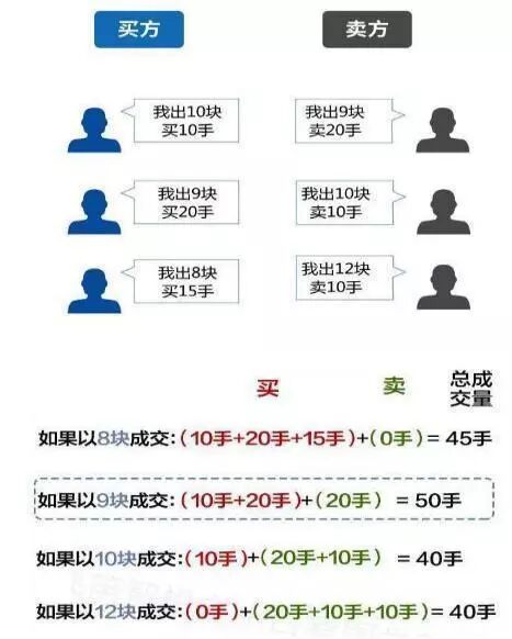 可以看出,以9元的价格成交量有50手是其中成交量最大的,根据规则,系统会选取9元作为开盘价。