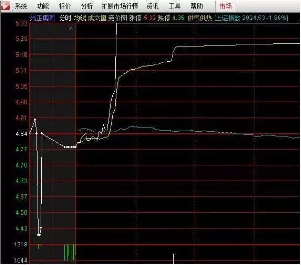 光正集团,股价在长期横盘后,接近跌停试盘,但是股价最终涨停。