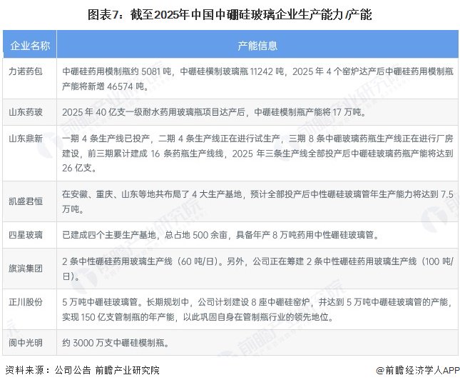 山东药玻2022年非公开发行股票申请文件反馈意见的回复显示,40亿支一级耐水药用玻璃瓶项目达产后,中硼硅模制瓶产能将17万吨。力诺药包2025年4个窑炉达产后,累计中硼硅模制瓶总产能预计可达62896吨。
