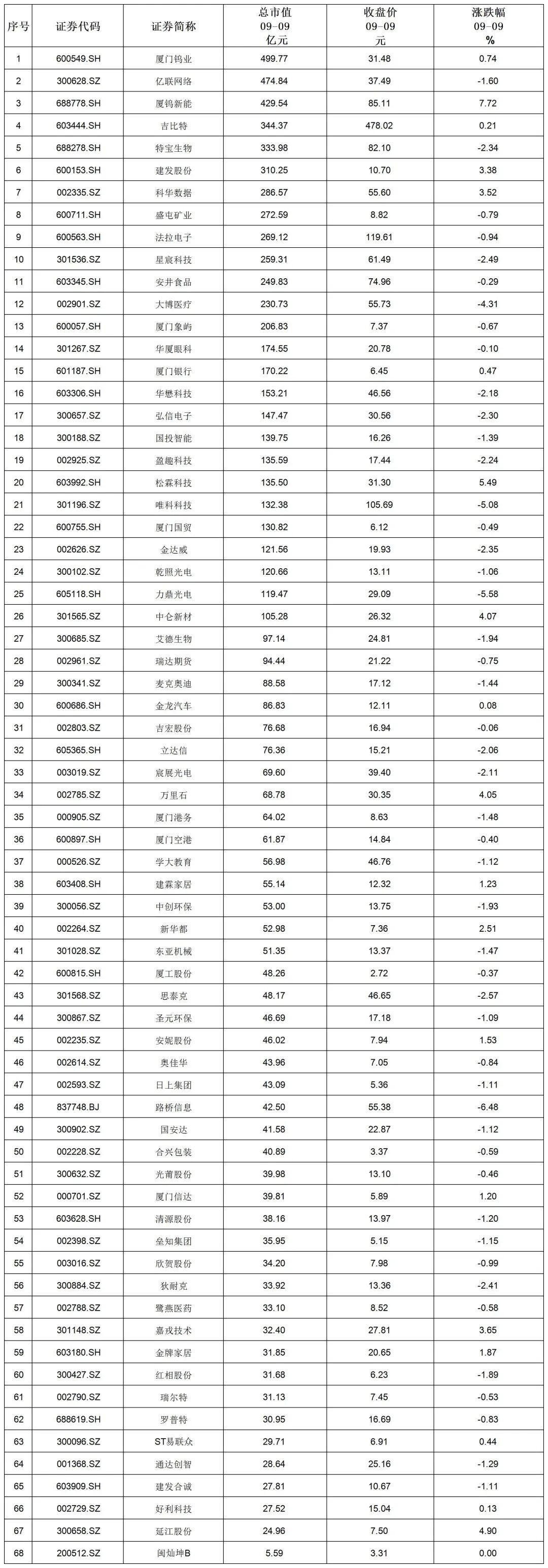 9月9日,上证综指下跌19.55点,跌幅0.51%,收盘于3807.29。辖区内上市公司总计68家,总市值7966.45亿元。
