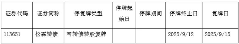松霖转债本次转股价格调整实施日期:2025年9月15日。