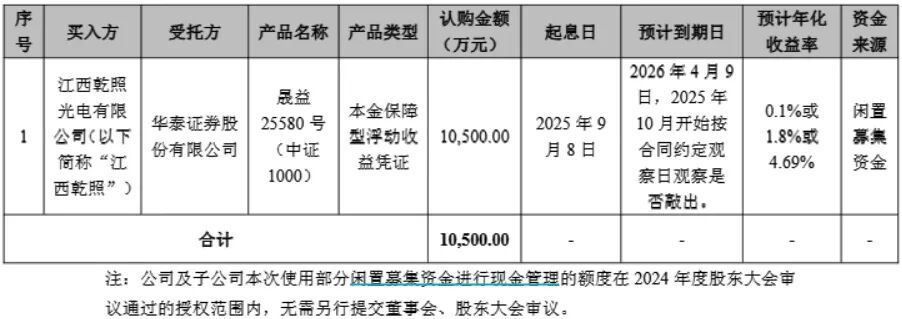 1.关于使用闲置募集资金进行现金管理的进展公告