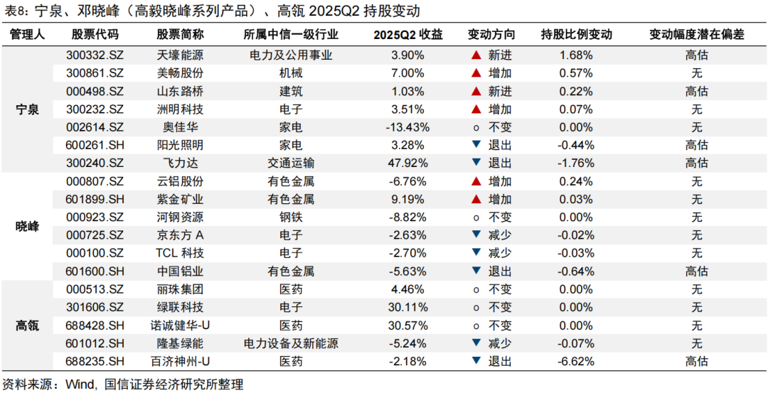 2025Q2邓晓峰(高毅晓峰系列产品)提高了云铝股份、紫金矿业的持股比例,并降低了中国铝业、TCL科技、京东方A的持股比例。