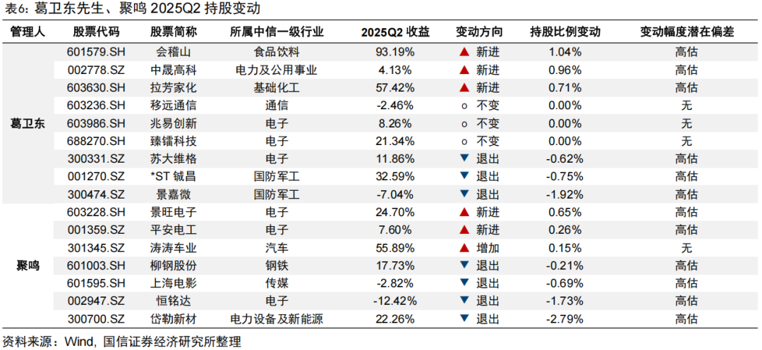 2025Q2葛卫东先生提高了会稽山、中晟高科、拉芳家化的持股比例,并降低了景嘉微、*ST铖昌、苏大维格的持股比例。