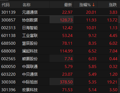 上证报中国证券网讯 9月10日早盘,算力概念股震荡走高,截至10时24分,元道通信20cm涨停,日海智能涨停,协创数据涨超10%,慧辰股份、中贝通信、宏景科技等跟涨。