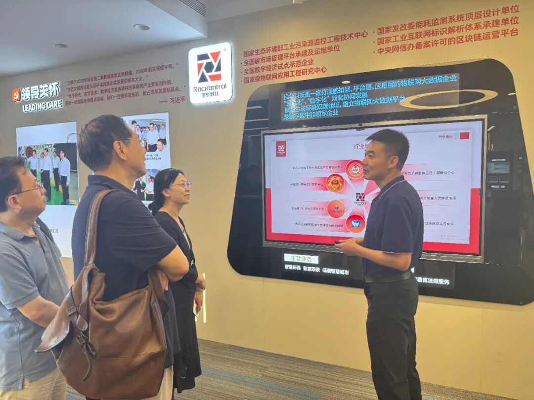 在企业展厅参观过程中,李玮董事长向张莹理事长一行详细介绍了佳华科技在物联网感知、大数据治理与人工智能算法等核心技术的研发进展,并重点展示了数据要素在智慧环保、智慧城市等领域的多项落地应用案例。