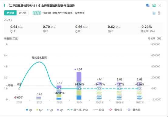 我国是全球糖尿病患病人数最多的国家,患者数量高达1.41亿,占全球近三分之一,且发病率持续攀升,呈现出低龄化的趋势。据摩熵医药数据库显示,2024年糖尿病用药在全终端医院销售额超500亿,同比增长达10.34%。此次葫芦娃药业获批二甲双胍恩格列净片(I),将进一步丰富自身在糖尿病治疗领域的产品线,凭借该药物在2型糖尿病治疗中多维度临床优势以及强劲的市场竞争力,有望在糖尿病用药市场中占据一席之地。