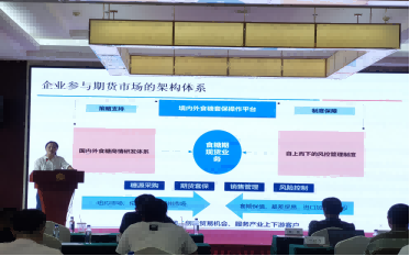 中粮糖业贸易部副总经理胡越洋女士作《期货期权在糖企中的应用思路及案例分享》,胡总从企业参与期货市场的架构体系、期货期权的应用等方面详细介绍。