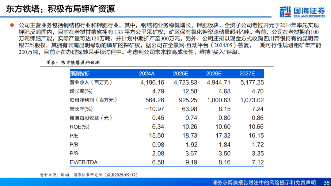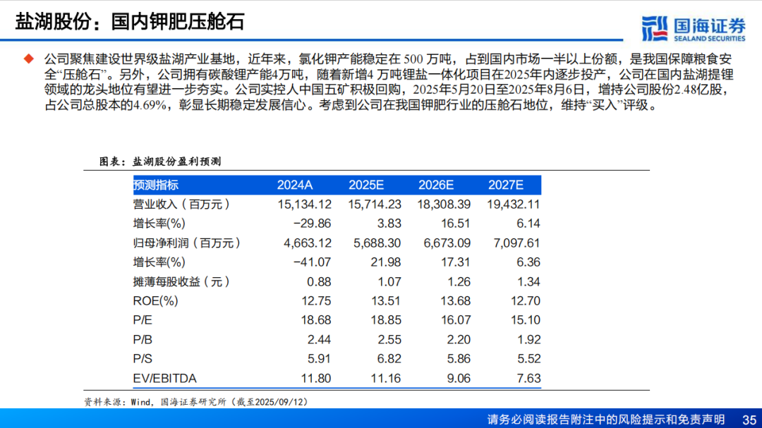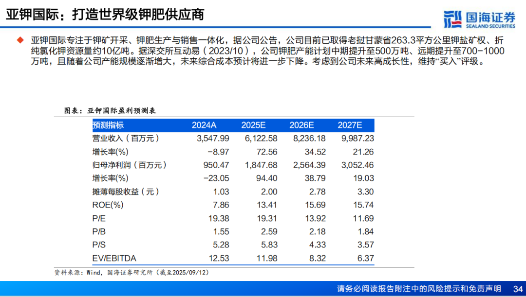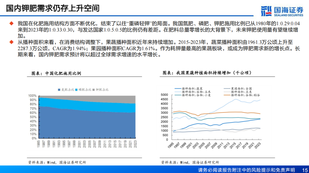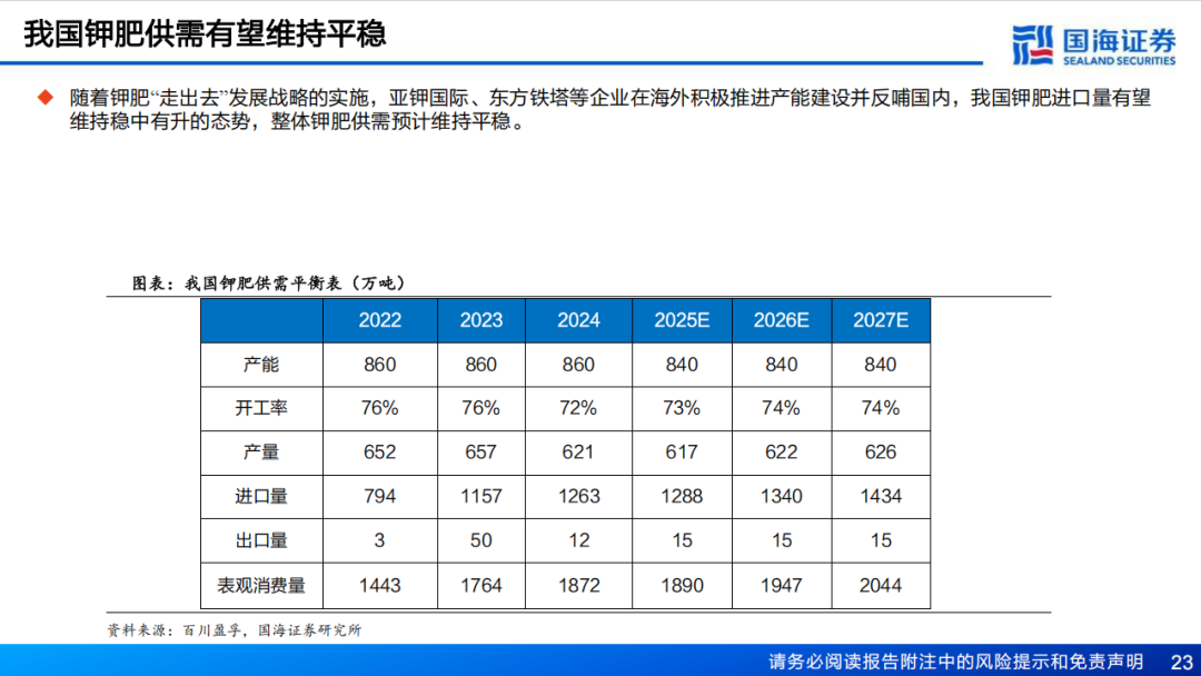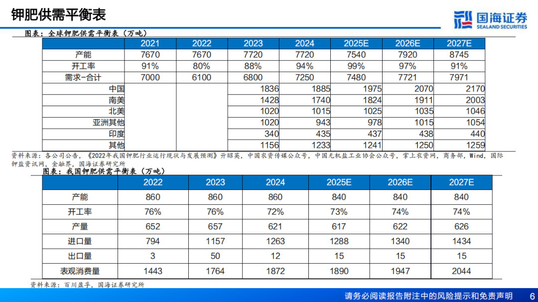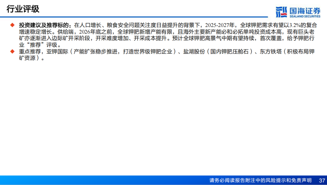 风险提示:钾肥需求不及预期、钾肥新增产能超预期、钾肥相关政策变动、推荐标的业绩不及预期、推荐标的新增产能建设不及预期。