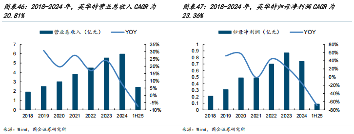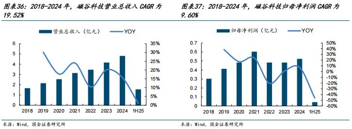 2018-2024年公司收入从1.64亿元提升到4.78亿元,CAGR为19.52%,归母净利润从0.30亿元提升到0.52亿元,CAGR为9.60%。1H25公司实现营业收入1.52亿元,同比增长1.17%,实现归母净利润0.04亿元,同比下降46.10%,归母净利润有所下降,主要受行业竞争影响,公司主营业务毛利率较去年同期有所下降,并且去年同期公司收到金额较大的政府补助。