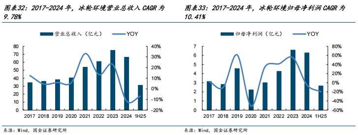 (2)看好国内龙头厂商全球份额提升,数据中心领域收入高增。汉钟精机是我国磁悬浮制冷压缩机行业龙头,目前已实现磁悬浮离心机单机冷量范围125-900RT,水平国内领先。汉钟精机与其制冷压缩机客户东元电机长期深度合作,拥有合资公司青岛世纪东元。东元电机近期和鸿海通过换股达成战略联盟,未来利用东元和鸿海在机房外电力基础设施和服务器等机房内设备的优势深度合作,为客户提供数据中心模组化产品、机电工程服务与一站式解决方案。伴随东元电机发力数据中心业务,1H25汉钟精机向东元电机销售额1338万元,同比+60%。此外,冰轮环境是我国磁悬浮离心冷水机组头部厂商,子公司顿汉布什是世界前5冷水机组厂商,可以自供压缩机,有十余年服务数据中心的经验,可以为数据中心提供一次侧冷源装备。目前已服务国内天河二号、中国联通西安数据中心等国内多家数据中心,相关经验丰富。