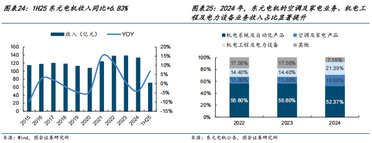 2018-2024年公司收入从7.53亿元提升到9.27亿元,CAGR为3.53%,归母净利润保持在0.52-0.77亿元之间,CAGR为-0.32%。1H25公司实现营业收入3.40亿元,同比-32.27%,1H25收入下滑主要系暖通产品部分订单的收入确认时间较原计划有所延期所致。受非流动性资产处置损益和政府补助等影响,公司1H25实现非经常性损益4.16亿元,实现归母净利润3.89亿元,同比+904.10%。