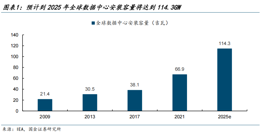 AI应用商业化落地与科技竞赛推动算力需求加速增长。ChatGPT、Sora等现象级应用的出现证明了AI技术的商业化潜力,推动全球科技巨头加速部署和应用AI能力。此外,为保持竞争优势,OpenAI、Google、Meta等科技巨头持续投入更大规模、更复杂的下一代模型研发,开启了针对高性能计算集群的“军备竞赛”。模型的参数量呈指数级增长,对训练和推理算力的需求近乎无限,推动了全球AIDC建设扩张。据国际能源署IEA预测,到2025年全球数据中心安装容量将达到114.3GW,全球数据中心用电量将达到485.4太瓦时(TWh),约占全球总电力需求的1.7%。