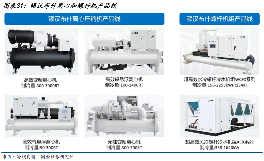 子公司顿汉布什控股有十余年服务数据中心的经验和丰富的全球案例,是世界前5冷水机组厂商。2020年,“变频离心式冷水机组”“集成自然冷却功能的风冷螺杆冷水机组”两项产品入选工信部《国家绿色数据中心先进适用技术产品目录》,其中,“变频离心式冷水机组”包含“高压变频离心式冷水机组”和“磁悬浮变频离心式冷水机组”。国内已成功服务了国家超级计算广州中心(天河二号)、中国移动(贵州)大数据中心、中国联通西安数据中心、北京四季青数据中心、上海交通银行数据处理中心、恒丰银行总部数据中心、北京中信银行数据中心、杭钢集团云计算数据中心、淮海大数据产业园、深圳梅林数据中心、数字福州云计算中心、武汉大数据产业中心、浙江之江国家实验室等诸多项目。在海外与多家本土专业集成商合作,服务了北美、澳洲、东南亚、中东诸多项目。2024年新升级上市的IDC专版磁悬浮系列产品和FanWall风墙顺利通过认证并开始大批量供货。
