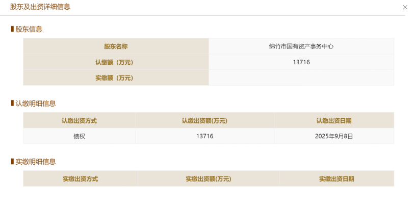 国家企业信用信息公示系统显示,此次绵竹市国有资产事务中心增资入股剑南春集团,认缴出资的方式为债权,而非货币。