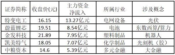 (注:主力资金净流入金额越多的涨停股,说明该股被主力资金重点关注,值得重点关注。)