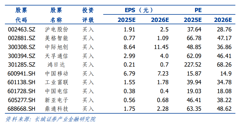 重点推荐(已覆盖):鸿日达、淳中科技、鼎通科技、中国移动、中国电信、中国联通、中兴通讯、紫光股份、工业富联、三旺通信、中际旭创、天孚通信、美格智能、瑞可达、深南电路、崇达技术、腾景科技、经纬恒润、德赛西威、中科创达、和而泰。