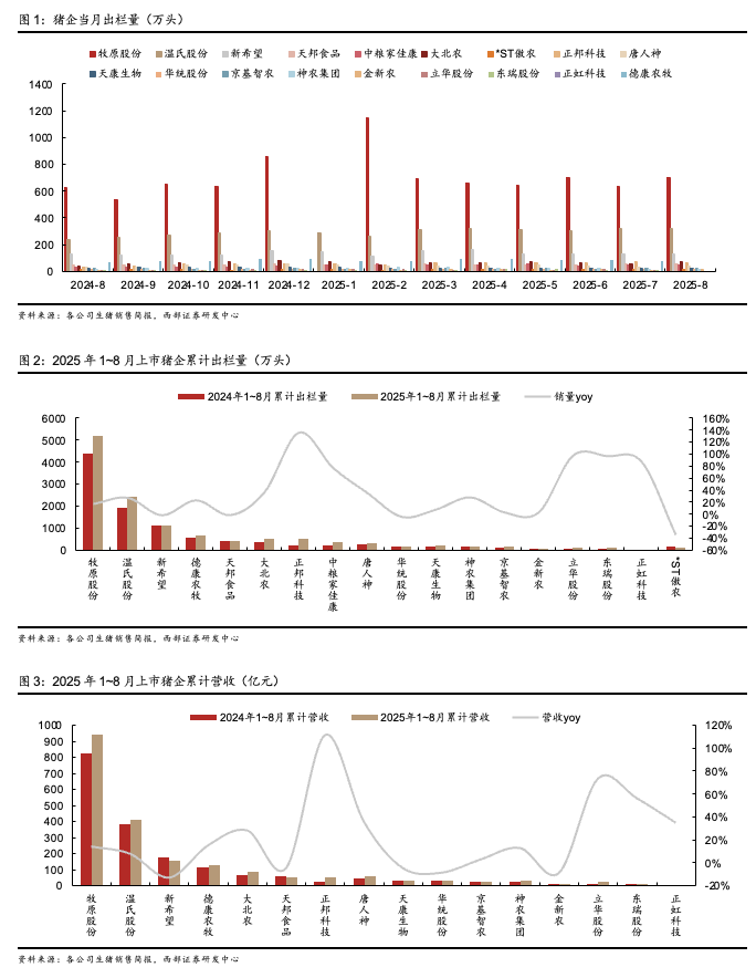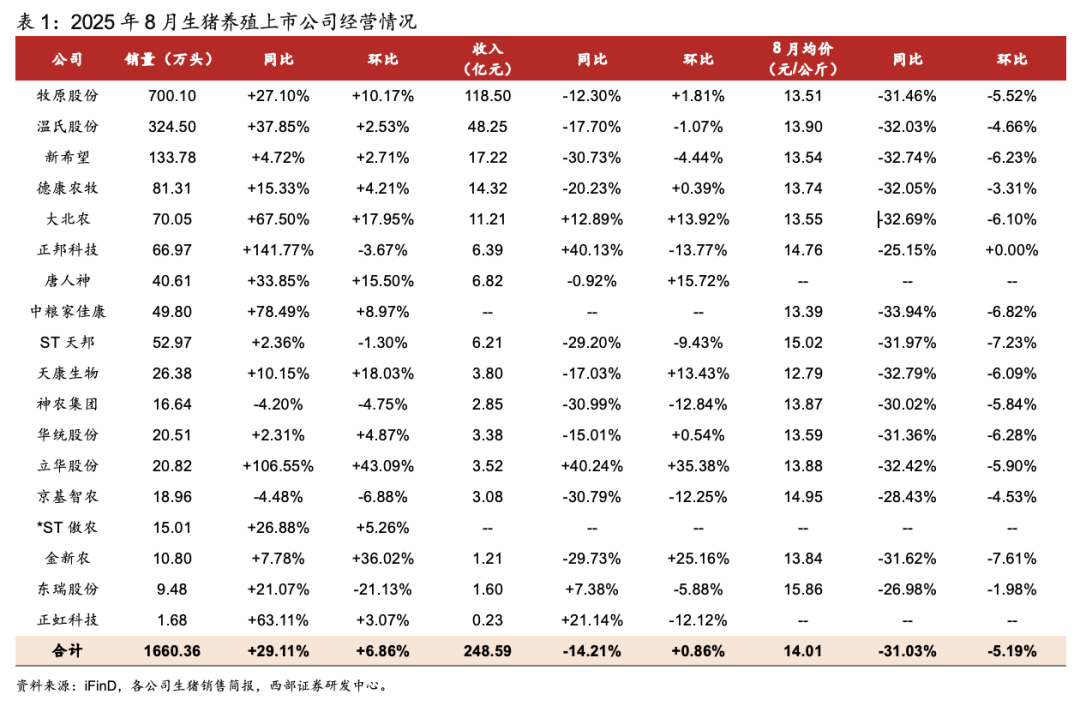 具体分析详见西部证券研究发展中心2025年9月17日对外发布的证券研究报告《生猪行业动态跟踪报告(月度):8月上市猪企出栏量同环比均上升,销售均价仍然低迷》