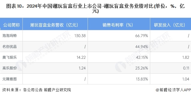 从潮玩盲盒行业上市公司已披露的业务业绩对比来看,在已披露与潮玩盲盒相关业务收入情况的企业来看,泡泡玛特拥有绝对优势,其潮玩盲盒业务营收130.38亿元。从销售毛利率情况来看,泡泡玛特的销售毛利率较高,达到66.79%。名创优品、奥飞娱乐的销售毛利率处于中等水平,元隆雅图的销售毛利率相对较低。