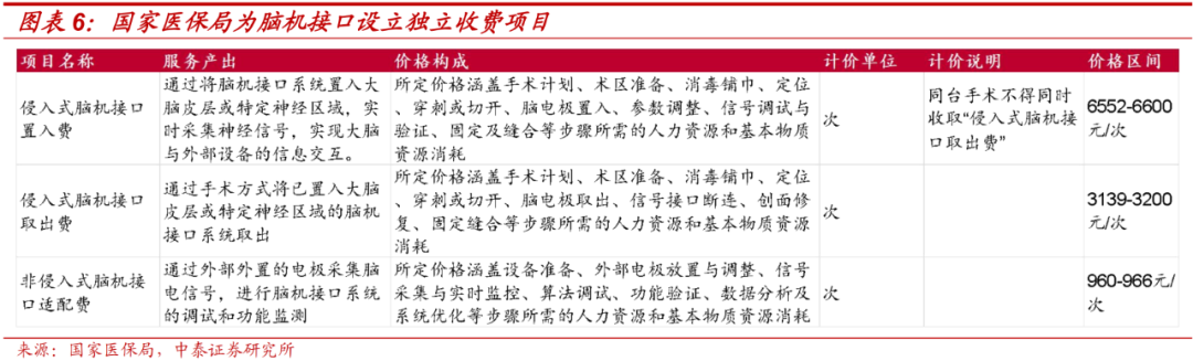 侵入式脑机接口置入费6552元/次;