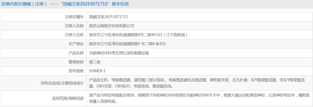 9月5日,山海医疗自主研发的“功能神经外科电生理记录和刺激设备”(商品名:明瞳)获国家药品监督管理局批准上市,成为中国首个获批的侵入式脑机接口III类医疗器械。
