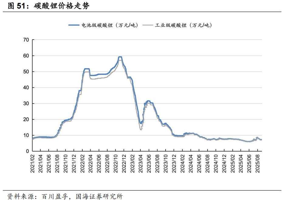 根据百川盈孚,2025年9月19日电池级碳酸锂均价7.30万元/吨,较9月12日上升0.2万元/吨。