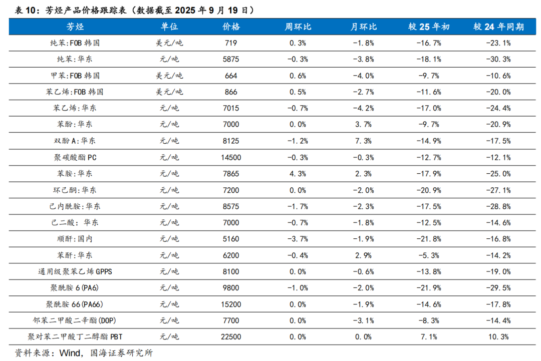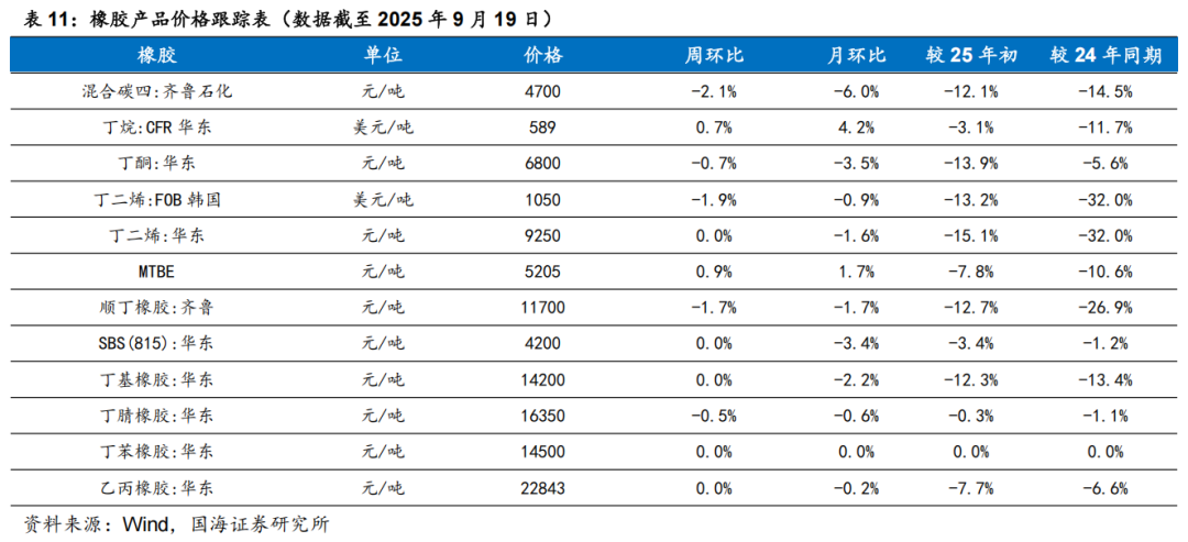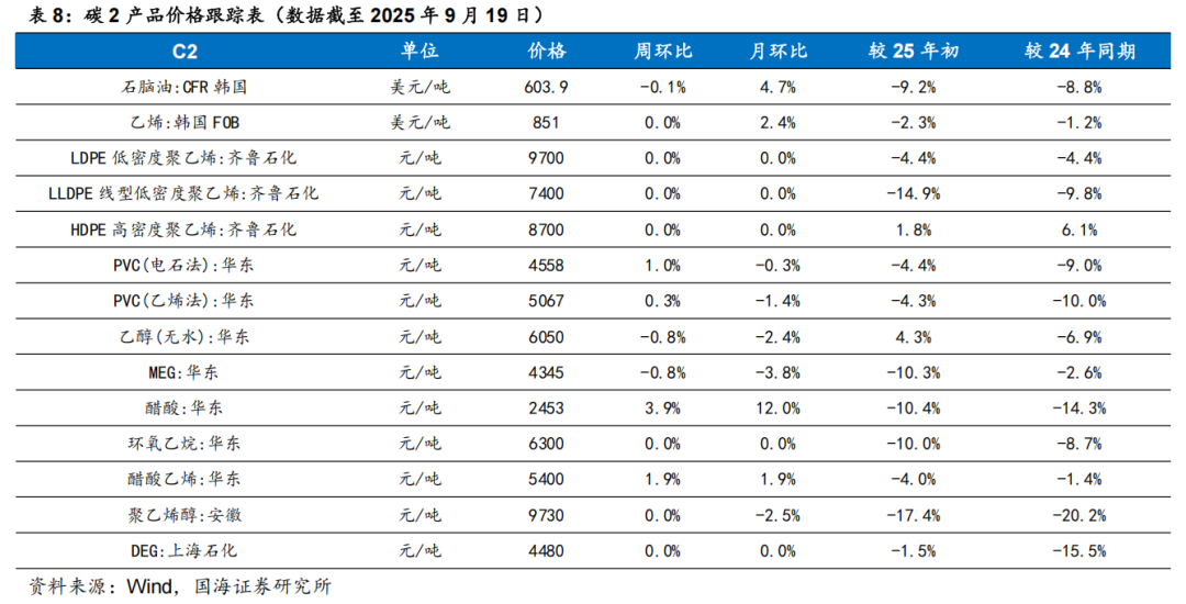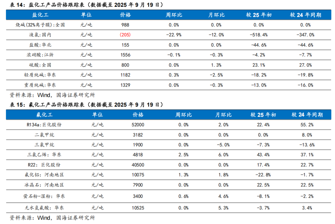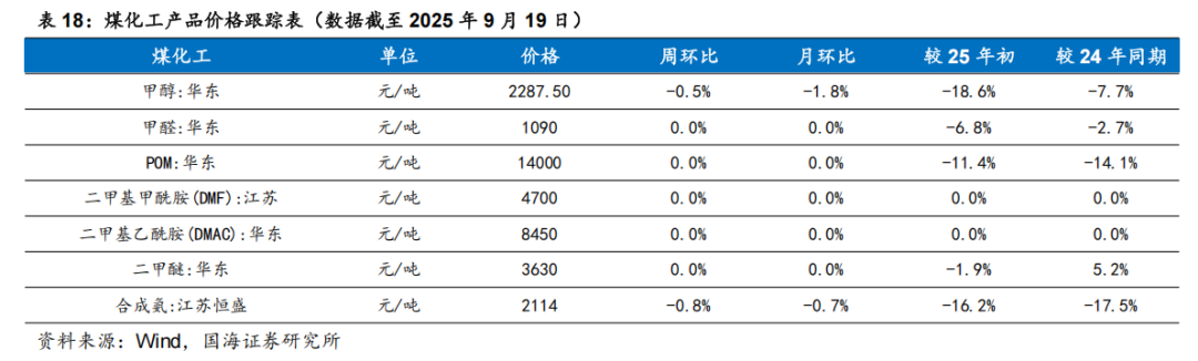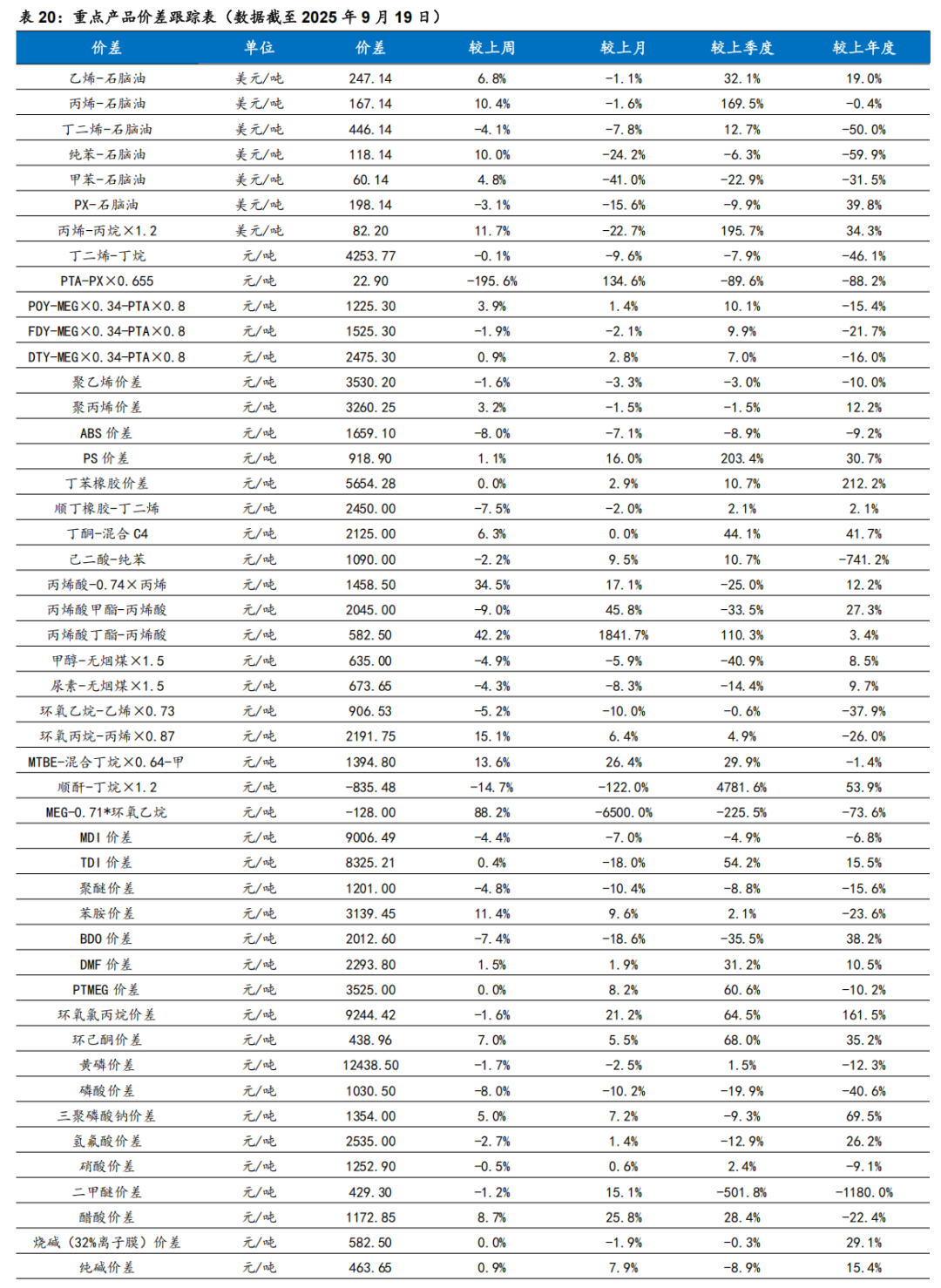 根据Wind,2025年9月19日顺酐价格为5100元/吨,环比9月12日下降100元/吨;据卓创资讯,2025年9月19日丁酮价格为6855元/吨,环比9月12日下降58元/吨。
