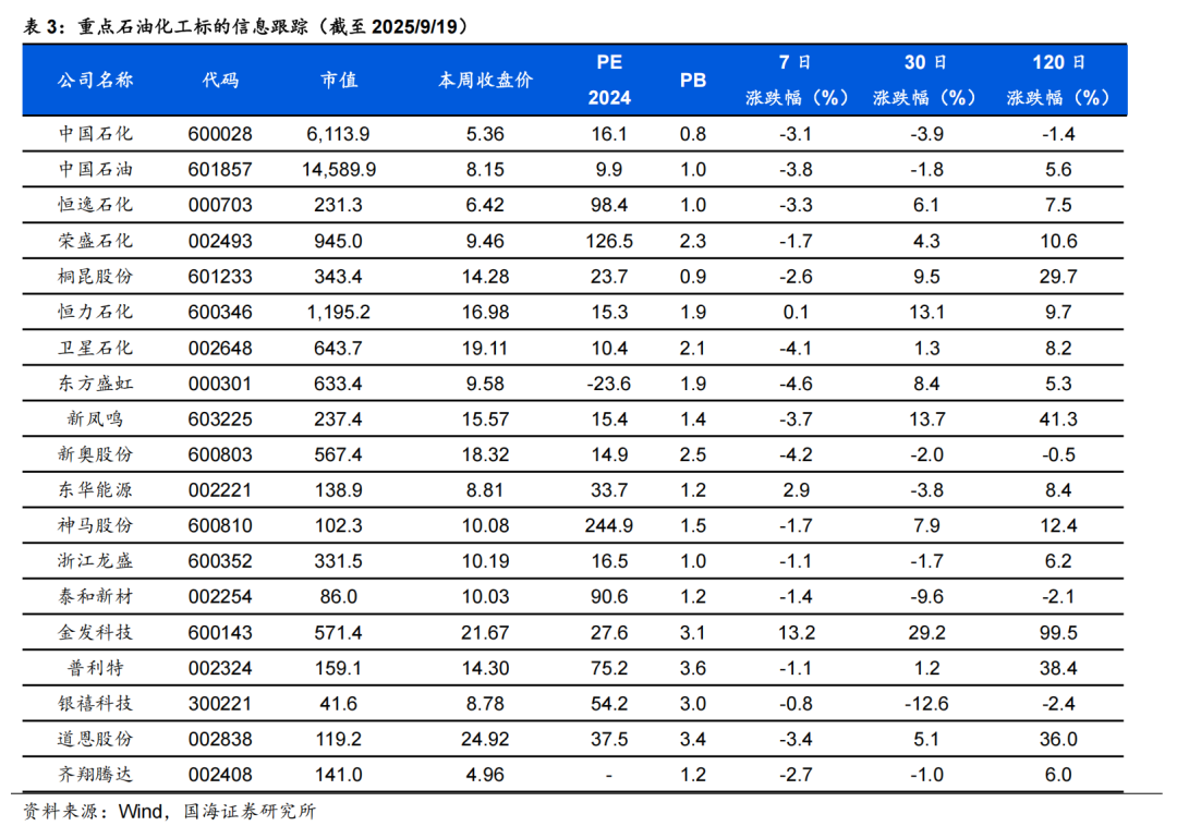 4)高股息。央国企具有高分红率、低负债率、稳定ROE水平,且具有较好的资源优势和稳固的竞争格局优势,我们看好高股息率化工央国企投资机会,主要包括中国石油、中国海油、中国石化、中国化学等企业。