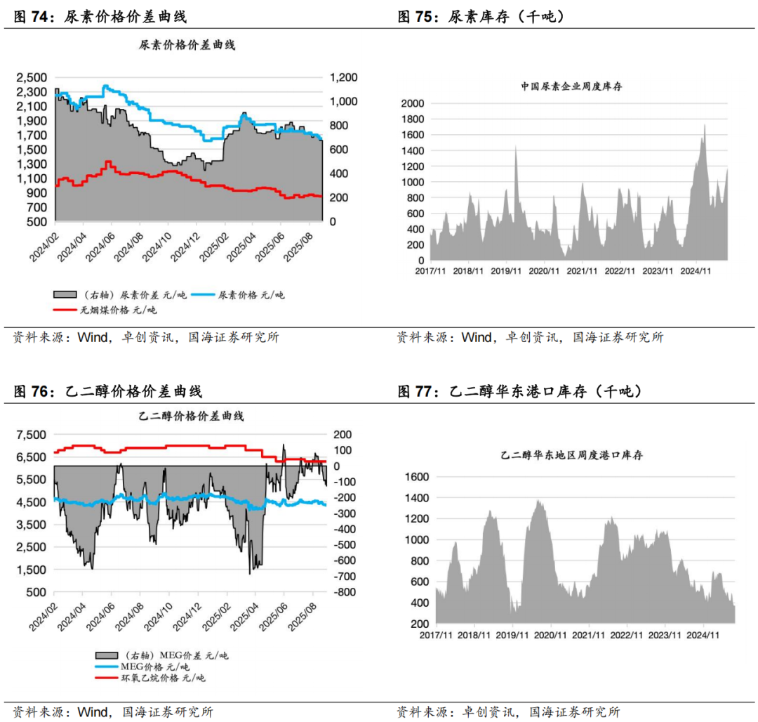 据百川盈孚,2025年9月19日乙二醇价格为4387元/吨,环比9月12日下降13元/吨。据卓创资讯,2025年9月19日尿素小颗粒价格为1680元/吨,环比9月12日下降10元/吨。