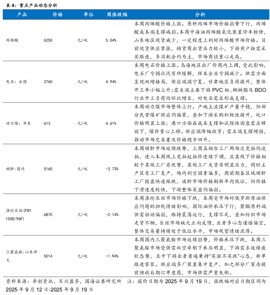 证券研究报告:国海化工|反内卷有望重估化工行业,丙烯酸、动力煤价格上涨