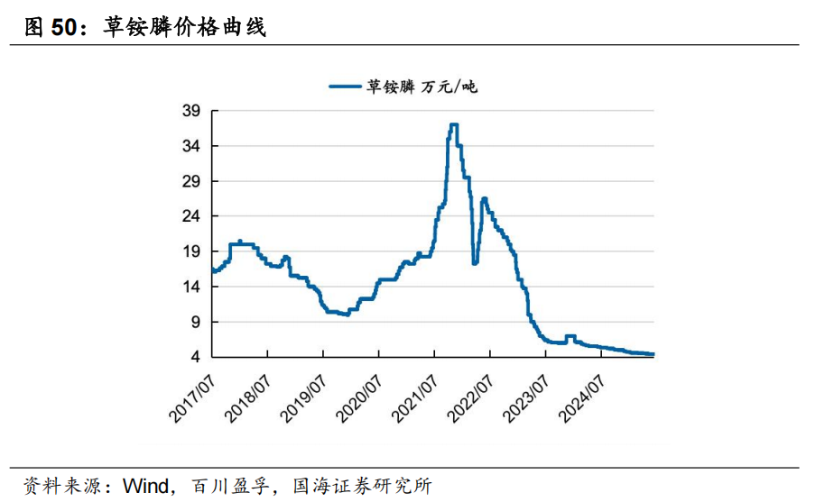 据Wind和百川盈孚,2025年9月19日草铵膦原药价格为4.45万元/吨,较9月12日持平。