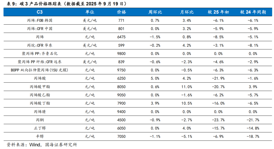 据Wind,2025年9月19日丙烯酸价格为6250元/吨,环比9月12日上升250元/吨。