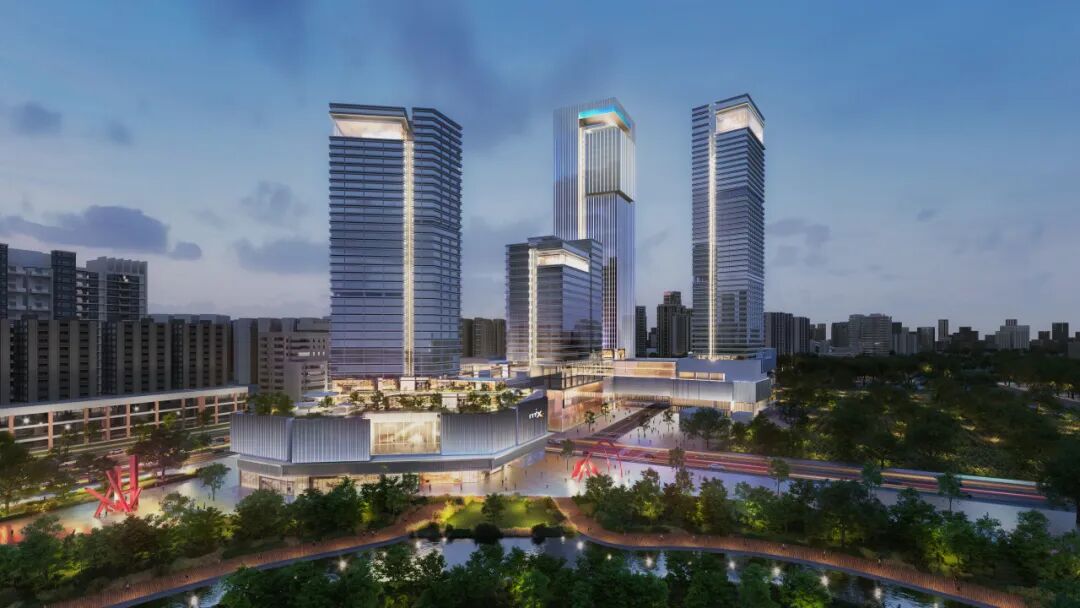 南京万汇城落子江苏唯一国家级新区江北新区核心,这里是南京重要产业集聚高地,周边5公里范围内汇聚了住宅、学校、办公人群等近75万常住人口,并通过地铁10号线与11号线双轨实现与全城的无缝连接,是真正的双轨上盖TOD项目。J&A杰恩设计提出“轻硬装重氛围”的反套路创新策略,打造集商业、办公、公寓于一体的超级城市综合体。