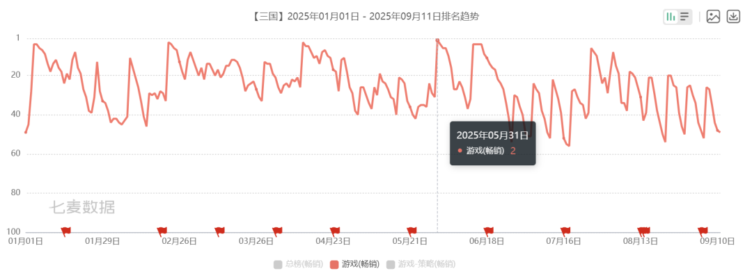 在转亏为盈的16家公司中,也有不少值得关注。比如上市以来连续亏损7年的B站,凭借《三国:谋定天下》的稳定贡献,首次实现盈利——游戏的畅销榜排名在今年仍稳定在TOP 50,还多次冲上TOP 3。
